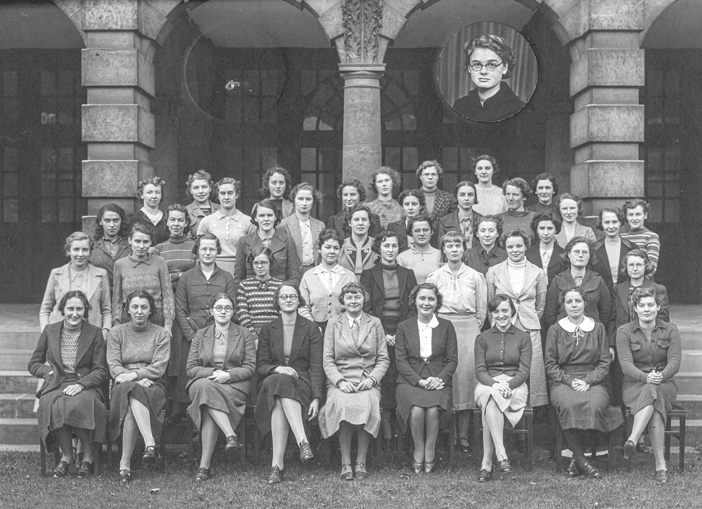 Año 1938. Retrato de un grupo de alumnas del Sommerville College de Oxford, entre las que se encuentran Mary Midgley (cuarta de la primer fila empezando por la derecha) e Iris Murdoch (cuarta de la segunda fila, comenzando por la izquierda).